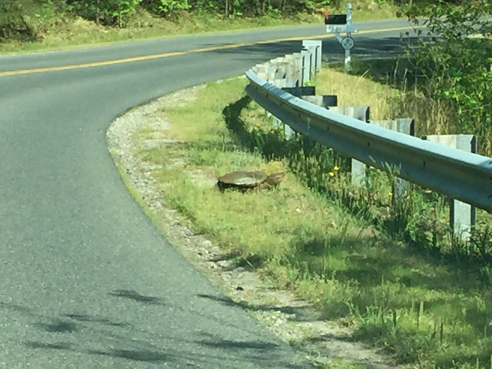 I recognized him as a snapping turtle right away and knew how dangerous these creatures can be. I had a plastic shovel in the trunk and when I approached him he went into aggressive mode. I was able to get the shovel under his belly and push him back towards the swamp. He didn’t appreciate the lifesaving attempts and was very aggressive, but the altercation convinced him to turn around and go home.